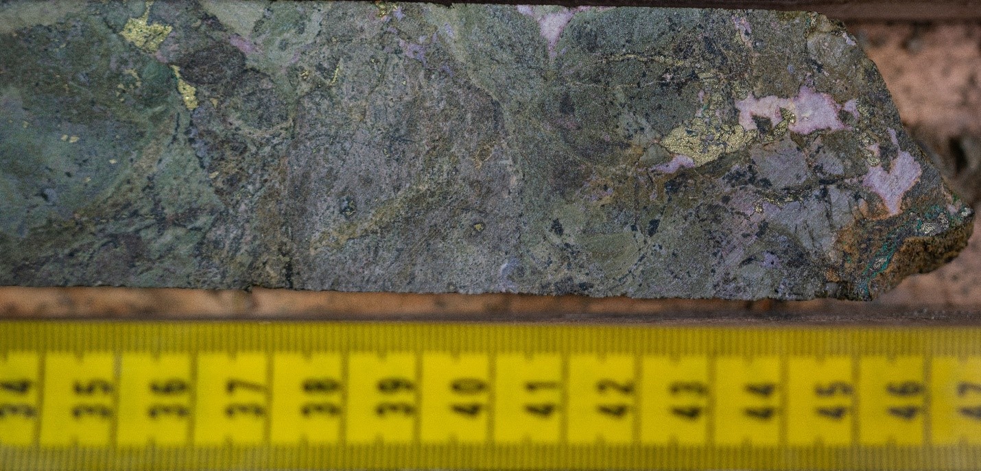Furthermore, a higher-grade core of mineralization within the 91.26 metre interval assayed 25.78 metres of 0.73% Cu, 0.63 g/t Au, 9.36 g/t Ag, and 0.11% Zn starting at 82.22 metres depth.