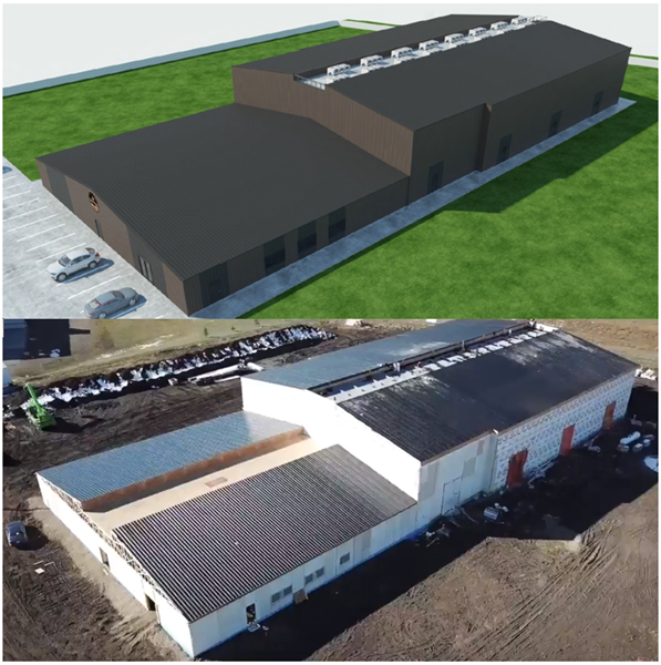 Phase 1 at Stavely, Alberta (Rendering on Top, Actual Building on Bottom)'